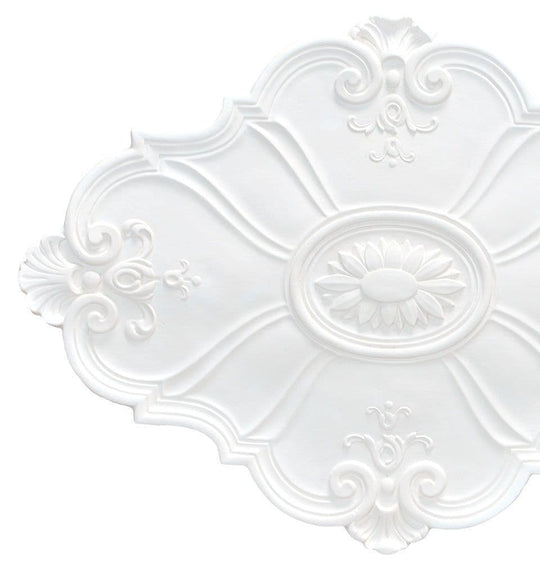 Make a bold statement with the Large Baroque Oval Plaster Ceiling Rose, an exquisite period design that’s anything but plain. This eye-catching diamond-shaped rose features elegant scalloped edging and a stylised sunflower motif at its centre...Regular price £101.99 -
