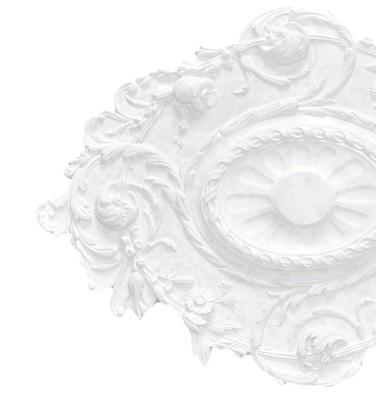 Large Oval Plaster Ceiling Rose 825mm by 590mm Grand and ornate, the Large Oval Plaster Ceiling Rose is a Baroque-inspired design that brings timeless elegance and visual drama to any interior. Featuring richly sculpted swirling acanthus leaves encircling a bold oval centre, this versatile...Regular price £101.99